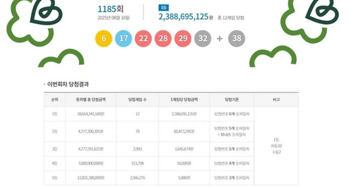 1185회 로또 1등 각 24억원씩…자동 10명·수동 ...