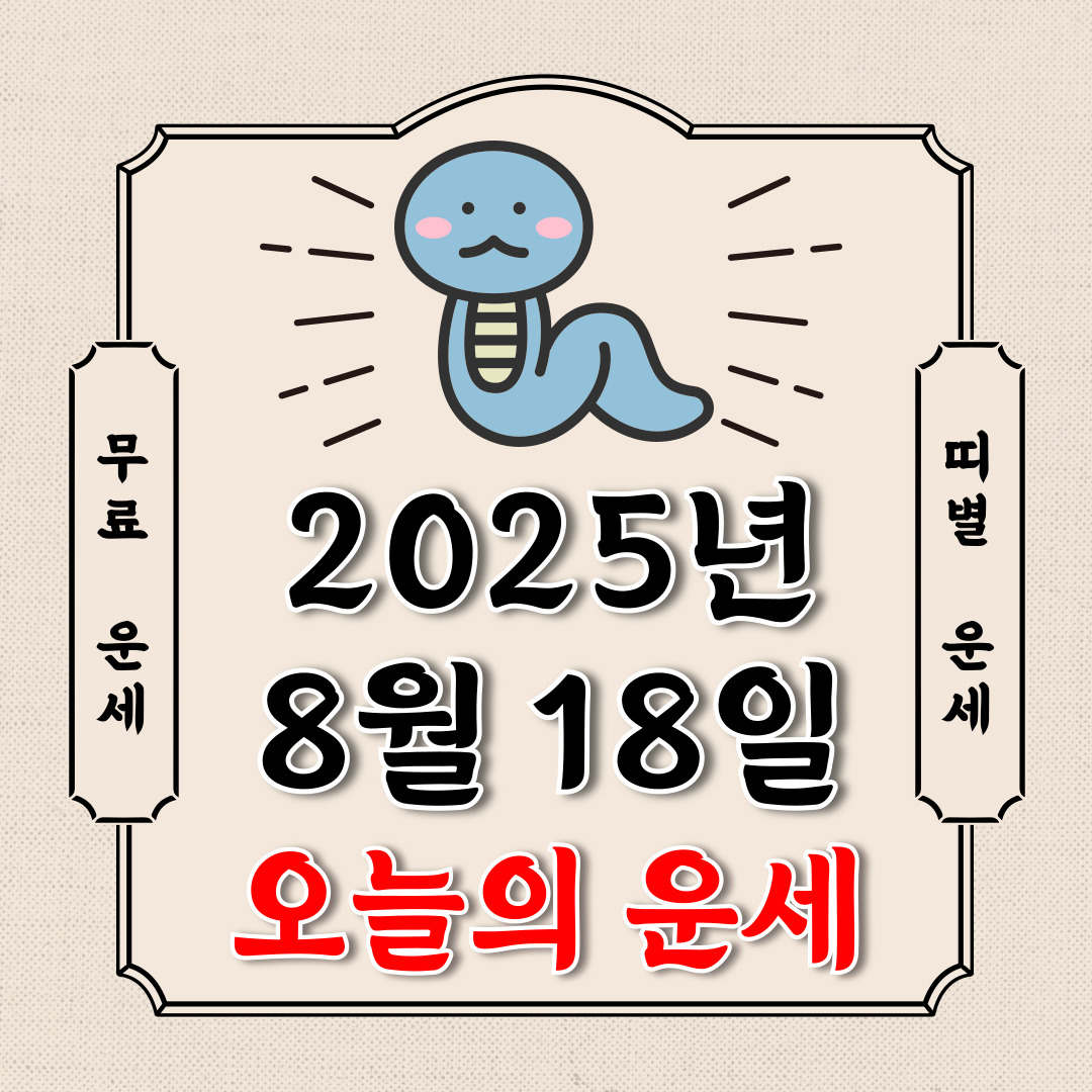 오늘의 운세 2025년 8월 18일 월요일 (음력 6월 25일 / 띠별 운세 / 생년월일 운세)에 대해 알아 보겠습니다.
